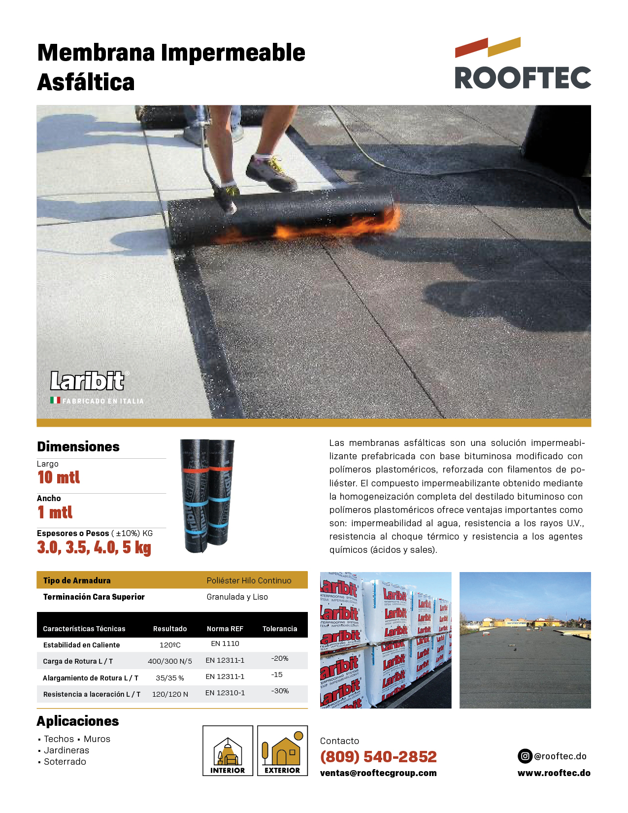 Las membranas asfálticas son una solución impermeabilizante prefabricada con base bituminosa modificado con polímeros plastoméricos, reforzada con filamentos de poliéster.