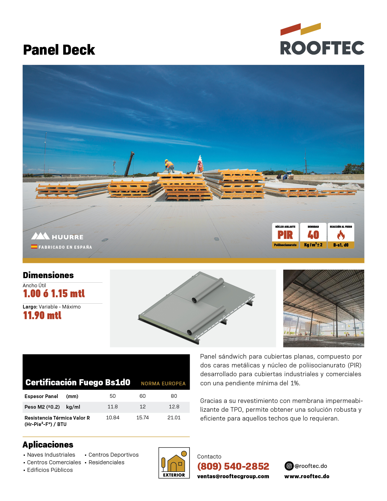 Gracias a su revestimiento con membrana impermeabilizante de TPO, permite obtener una solución robusta y eficiente para aquellos techos que lo requieran.
