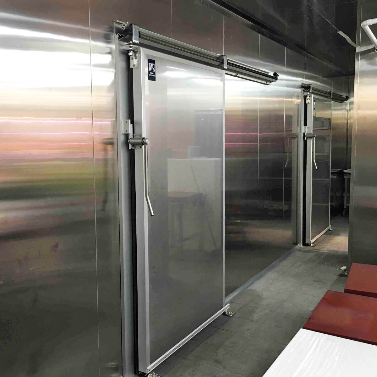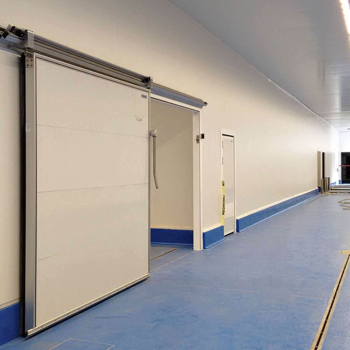 Puerta corredera frigorífica son recomendadas en cámaras frigoríficas y zonas de acceso donde se necesitan puertas de grandes dimensiones o con pasos aéreos.